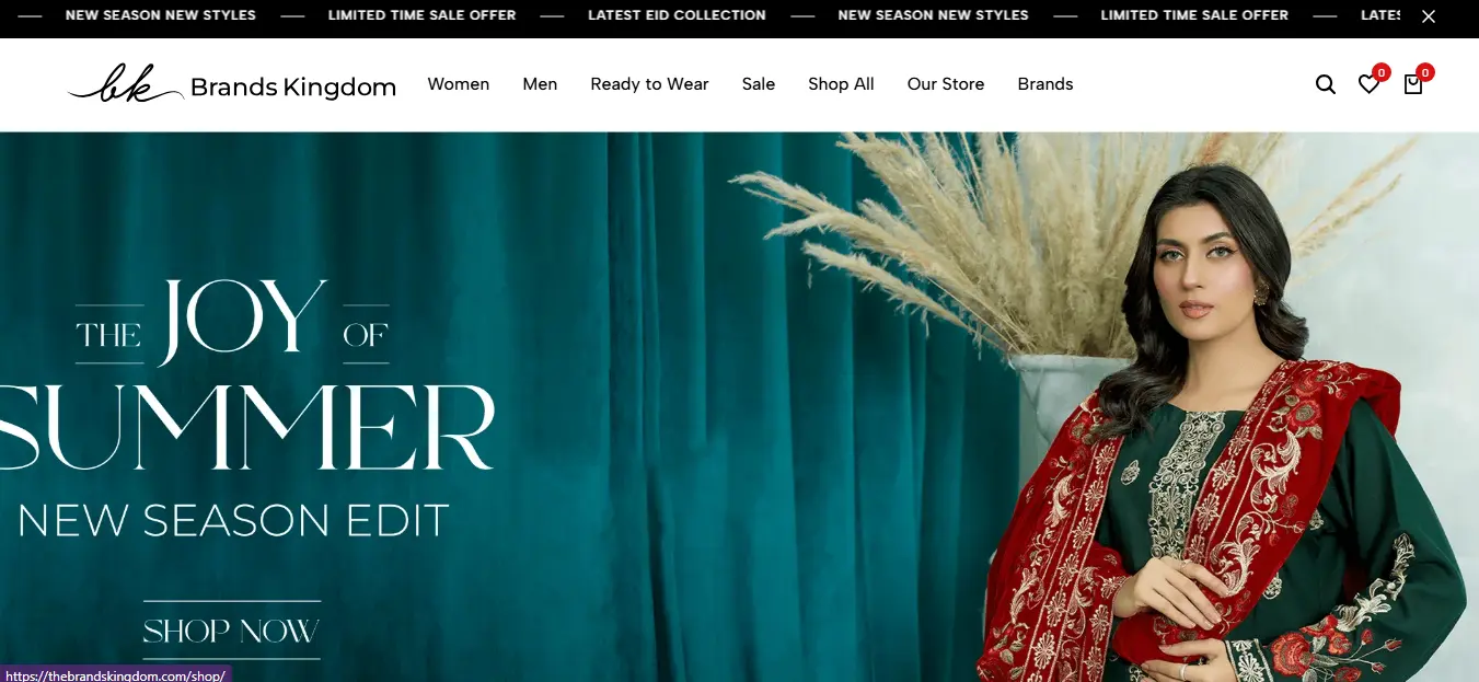 Brands Kingdom is an online fashion store offering trendy eastern and western wear delivering style, quality, and convenience for men’s and women’s clothing through a smooth e-commerce experience.